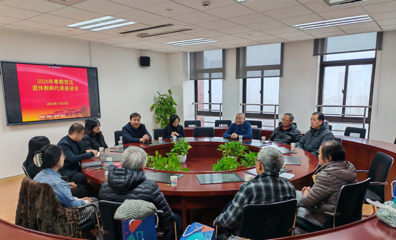 2026年1月20日上午,大寒时节雪花飞舞,在哲法学院文科实验楼808会议室内暖意融融,哲法学院全体班子成员和退休教师代表陈泽环、施延亮、朱国定、王晓成、方堃、陈敏等围坐而叙。