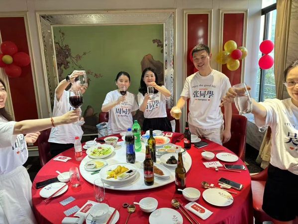 “自行束脩以上,吾未尝无诲焉。”聚会伊始,同学们用《论语》中的古礼向恩师环建芬副教授献上“束脩六礼”——以知识为脯、品德为枣、勤勉为芹、赤诚为红豆、思辨为龙眼、济世为莲子,竹篮里的六样信物,恰如十年前课堂上播下的种子,如今已在各自的人生土壤里生根发芽。衷心感谢环老师顶着烈日,拨冗而至,代表学院向我们表达殷殷关切。十年来,我们也不负学院和老师的期待,努力践行着学校的校训:“厚德、博学、求是、笃行”。