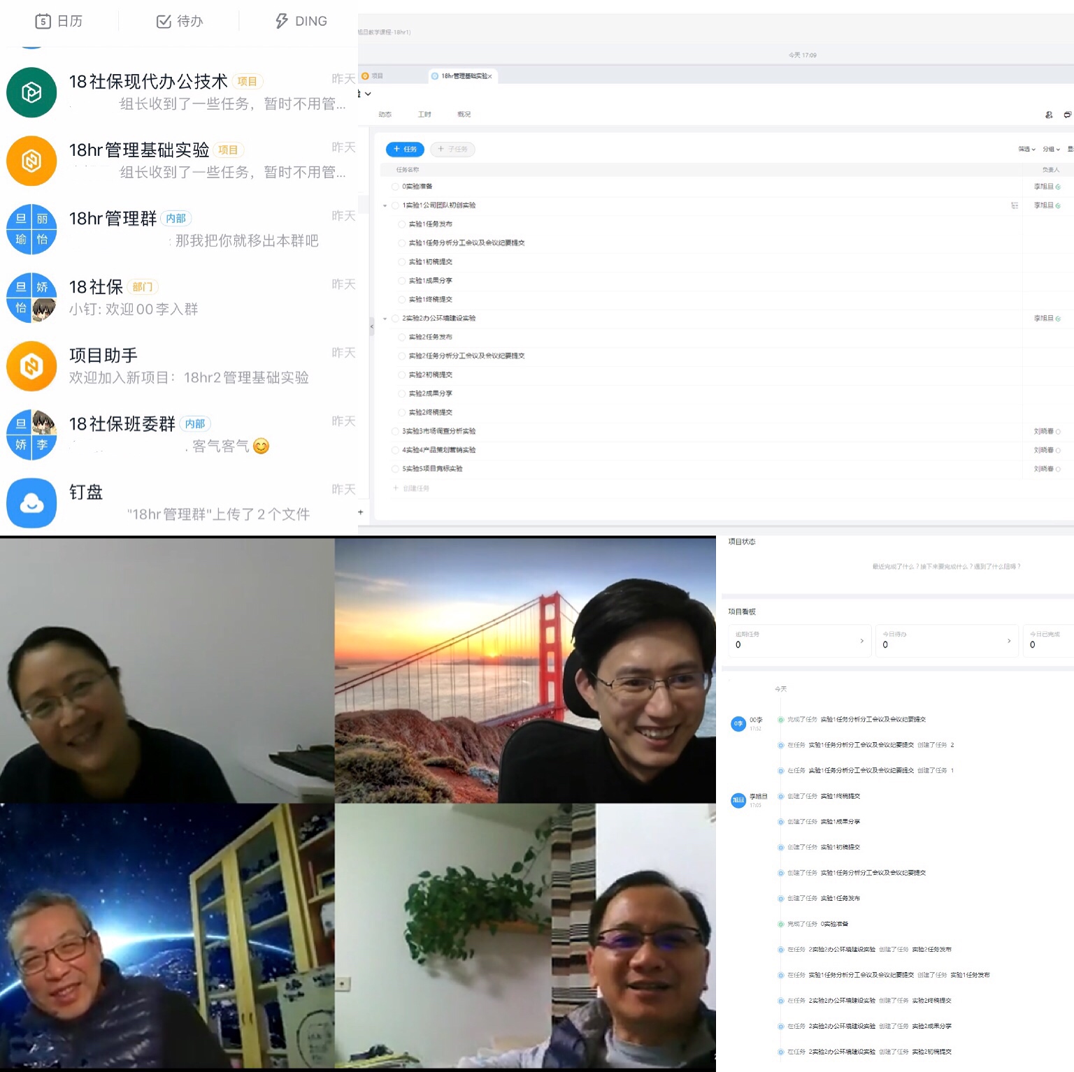 实验课不同于其它基于在线教学平台的网课,其开设主旨是培养学生的专业应用能力及职业核心素养,强调通过管理过程对专业知识和实践技能进行理解和强化,结合专业教师的管理实践项目和经验开发设计模拟项目管理情境,以项目化学习(PBL)方式促进学生开展研究和实践,提升学生综合学习能力和实践效果。项目化学习的每个实验项目均设置项目经理及主管,以提供学生体验领导与被领导的不同角色,在培养领导力与追随力的同时形成同理心与换位思考的职场素养。在线实验课在保持实验项目角色仿真模拟的同时,增添了学生班委团队利用钉钉管理平台辅助教师管理实验群组的功能,同时充分利用线上会议管理模式进行沟通,建构了丰富的学习共享空间。专业教师在课程平台应用基础上顺势结合钉钉系统的功能进行日常管理,衍生建立针对实验项目的项目群进行课程推进,促使学生在社群沟通中燃起更强的求知欲,同时也充分激发教与学的活力。