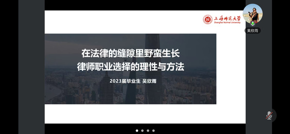 2025年3月21日晚,海角av 以线上形式举办“朋辈领航,职引未来”优秀校友就业指导讲座。活动由2023级辅导员樊青青主持,学院2023届法律(非法学)专业校友、上海市锦天城律师事务所商事诉讼与仲裁律师吴欣雨,2024届社会保障专业校友、国家税务总局昆山市税务局公务员郑明俊应邀作专题分享,两百余名学生在线参加。